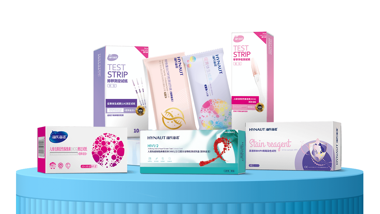 海氏海諾試紙檢測的產品,操作簡便快速、結果直觀易讀、特異性較高、成本低、便于攜帶和現場檢測。產品包含:早孕試紙、早早孕試紙、排卵試紙、尿常規(guī)試紙、HPV病毒染色試劑、HIV測試等產品。